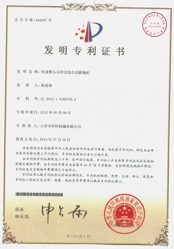企業(yè)組建了“云浮市石材機械裝備工程技術(shù)研究開發(fā)中心”,并與高校和科研院所密切合作,致力于光機電一體化產(chǎn)品的研發(fā)、生產(chǎn)、銷售和服務(wù)。主要產(chǎn)品有框架鋸、全自動連續(xù)磨拋機、橋式自動切割機、全自動仿形石線機、數(shù)控金剛石繩鋸、裁切機等。產(chǎn)品具有自動化程度高、加工精度高和生產(chǎn)效率高等特點。產(chǎn)品除國內(nèi)銷售外,還出口到歐美、東南亞、韓國、印度、中東、非洲、俄羅斯、澳大利亞等國家和地區(qū),深受用戶好評!皹蚴阶詣忧懈顧C”被認定為廣東省高新技術(shù)產(chǎn)品,擁有發(fā)明專利1項、實用新型專利1項。